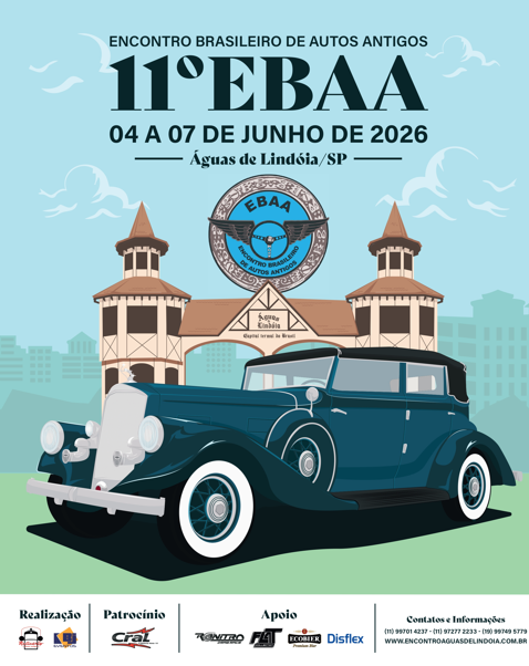 O 11º Encontro Brasileiro de Autos Antigos (EBAA) de Águas de Lindóia acontece em 2026 entre os dias 04 e 07 de junho, na Praça Adhemar de Barros, no Centro da cidade. O maior evento do gênero na América Latina, que é gratuito para visitação e espera pelo menos 500 mil visitantes em quatro dias de evento, se prepara para receber entusiastas de todo o Brasil.