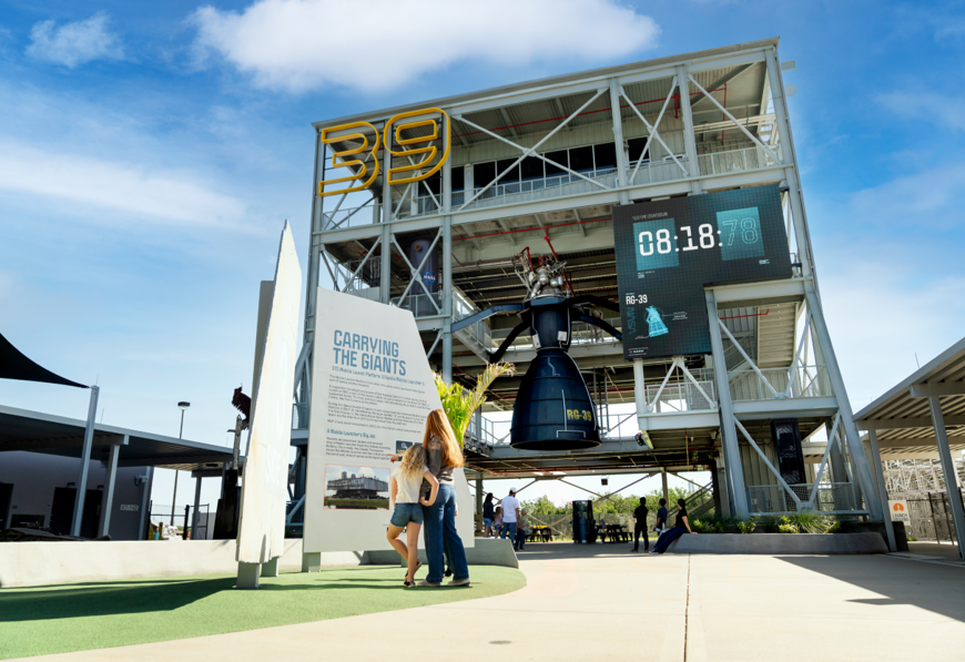 O Gantry, no histórico Launch Complex 39, reconecta o visitante às origens da exploração espacial. Em uma estrutura elevada com passarelas, exposições e vistas amplas, cada passo revela novos ângulos das plataformas de lançamento, áreas operacionais e da reserva natural ao redor. A visão 360 graus transforma o percurso em uma imersão que combina história, tecnologia e a grandiosidade do Kennedy.