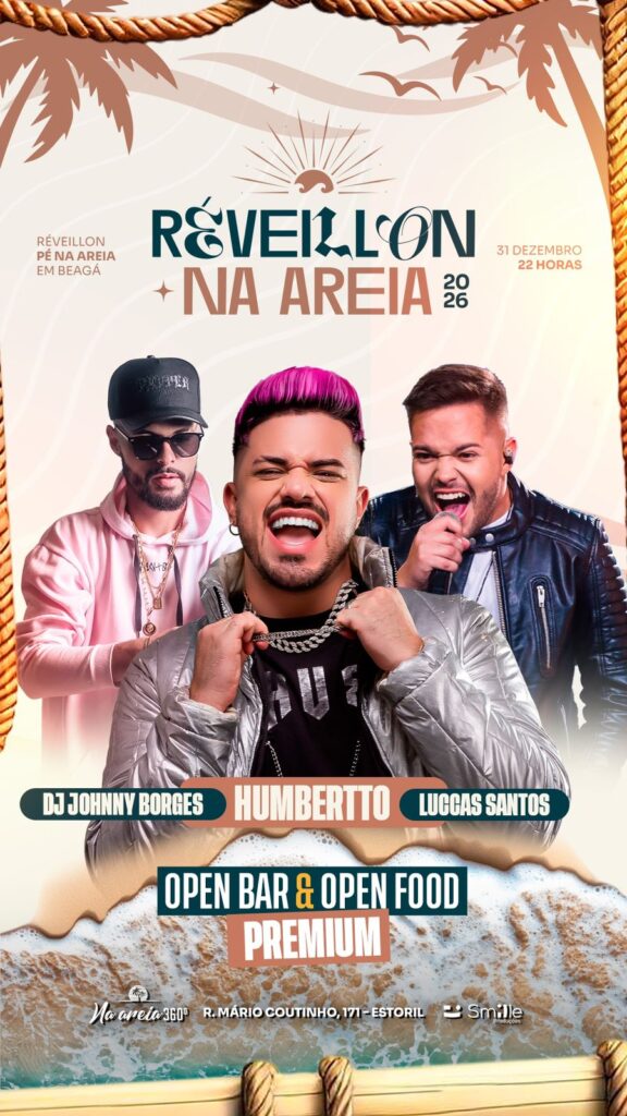Passar o réveillon na praia, sem sair de BH, é possível? Com atendimento de Buffet, com garçons volantes e conforto? Essa é a proposta do Réveillon Na Areia 360. Tudo para começar 2026 com alto astral. A festa será “com o pé na areia”, clima praiano e energia tropical. Haverá uma decoração com esse tema. A estrutura será aconchegante, em um formato especial na Arena BH Beach. O evento tem o sistema all inclusive, com open bar Premium, que inclui gin Gordon, vodka Absolut, cerveja Heineken e Original, whisky 8 anos, Xeque Mate, energético, espumante, água tônica, água mineral com gás e sem gás, drinks, sucos e refrigerantes.