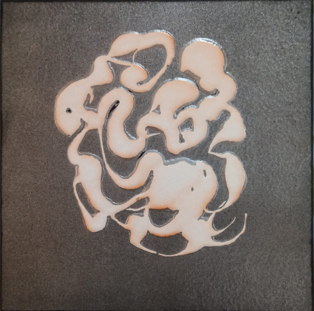 As formas criadas por ele evocam padrões presentes em partículas sub-atômicas, em fractais. Buraco negro e galáxias (siderais e mentais) dialogam e pedem licença poética para um “infinito particular”.