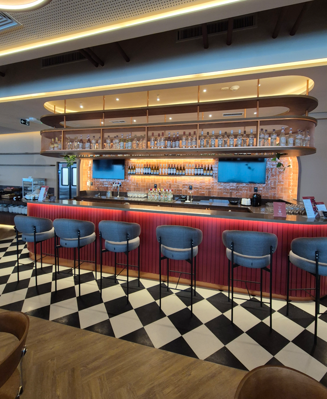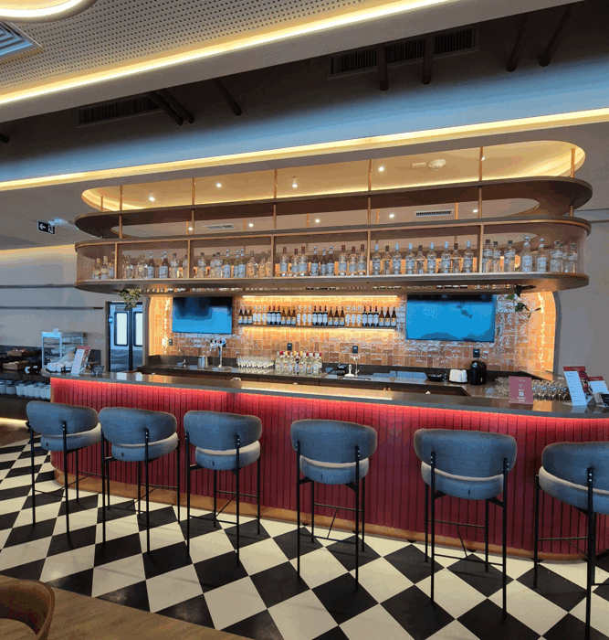 Com 1.100m² e capacidade para receber 283 passageiros simultaneamente, o lounge oferece experiência completa e sofisticada para diferentes perfis de viajantes, reunindo áreas de descanso, cabines privativas para reuniões, mesa de coworking, espaço kids e estação gastronômica com menu versátil que atende todas as refeições do dia. Entre as opções de bebidas, destaque para os drinks preparados por bartenders especializados.