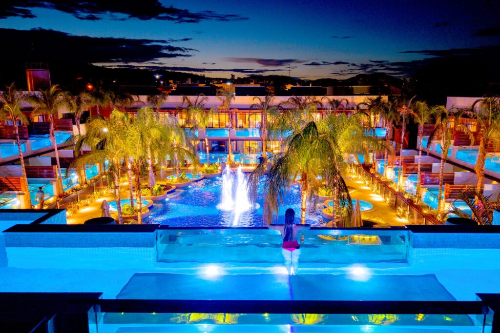 A principal, com 330 m², é rodeada por jacuzzis e áreas de convivência e conta, em seu centro, com uma fonte de águas dançantes, programada para realizar apresentações periódicas. A segunda piscina, com design arrojado, possui 155 m² e laterais e fundo de vidro, consolidando-se como a maior piscina suspensa do Brasil e uma das maiores do mundo com essas características.