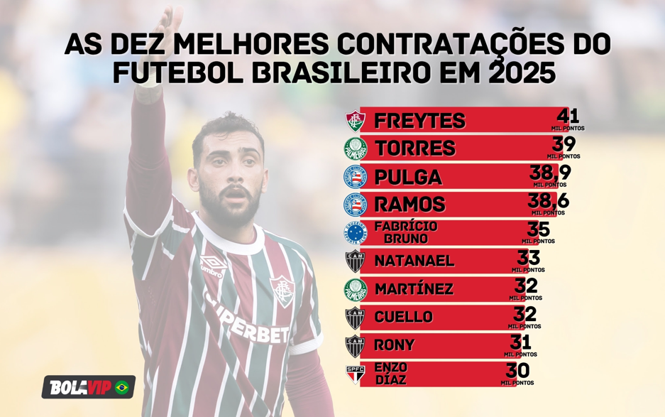 Os dez melhores reforços do futebol brasileiro em 2025: