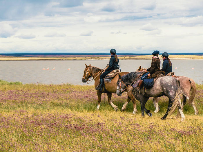 No extremo sul da Patagônia Chilena, a Estancia Cerro Guido é o ponto de partida para uma travessia entre montanhas monumentais, planícies abertas e vales remotos. A cavalgada permite explorar diferentes faces do Parque Nacional Torres del Paine, com paisagens dominadas pelas icônicas torres de granito, lagos glaciais e encontros inesperados com guanacos, raposas e aves típicas da região. A experiência é enriquecida pelo trabalho de conservação da Fundação Cerro Guido, que alia pecuária regenerativa à proteção da fauna local. Uma viagem profunda que revela a força da paisagem e a delicadeza da vida que nela resiste.