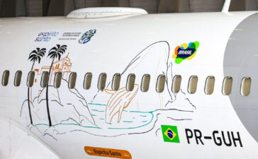 Boeing 737-800 ganha pintura especial em homenagem ao estado, ilustrando ícones como o Convento da Penha, a Pedra Azul e...