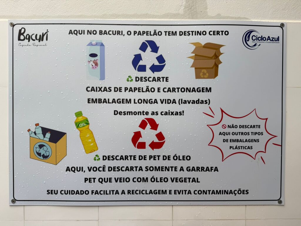 Para obter a certificação Lixo Zero, baseada em padrões internacionais da Zero Waste International Alliance (ZWIA), é necessário que o estabelecimento garanta a destinação correta de pelo menos 90% dos resíduos. Com o apoio técnico da Ciclo Azul, o Bacuri Cozinha Regional segue no caminho certo para obter a certificação Lixo Zero, diminuir impactos ambientais e inspirar outros negócios a fazer o mesmo.