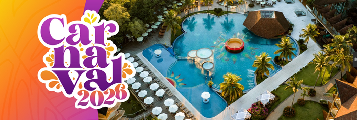 Durante o período carnavalesco, o resort promove uma programação temática especial, que reúne bloquinhos, música ao vivo, festas carnavalescas, atividades lúdicas, recreação infantil monitorada, oficinas criativas e muita diversão. As famílias também podem curtir a ampla área de lazer em piscinas com águas termais, espaços aquáticos infantis, ambientes esportivos, atividades outdoor e áreas de descanso.
