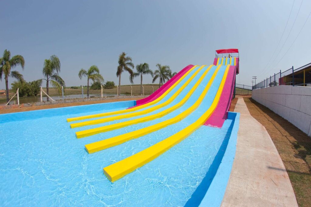 Uma rampa aquática gigante, inspirada em uma pista de skate que utiliza boias especiais para se escorregar;