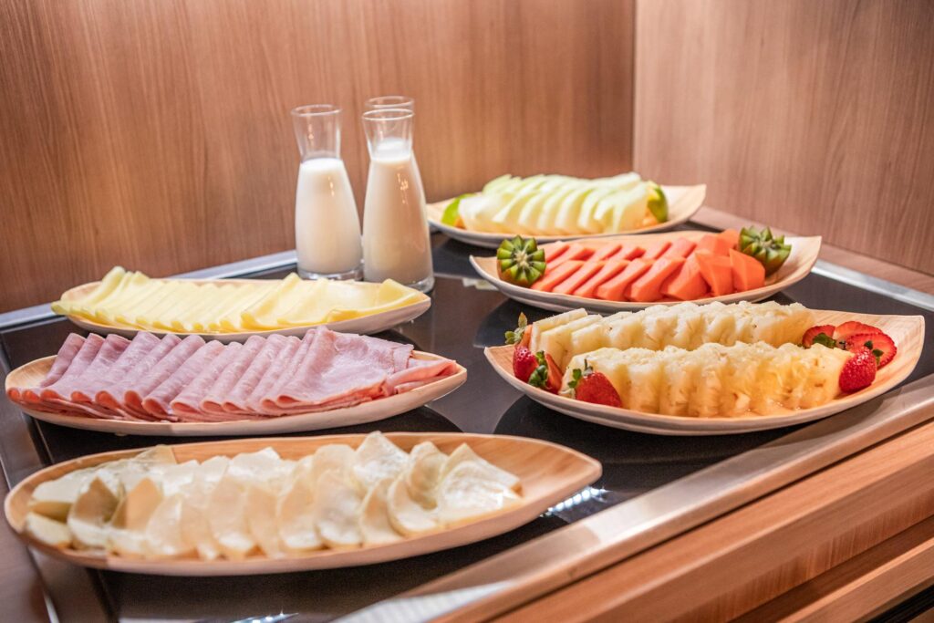 O hotel prepara um delicioso café da manhã para o Dia dos Pais, que será servido no seu descolado restaurante Bite Box. O buffet conta com uma seleção variada para agradar todos os gostos: bebidas quentes e frias como cafés, leites, sucos, iogurtes, chás e capuccinos, além de uma estação repleta de pães, frios, frutas frescas, geleias e bolos. Para quem aprecia algo mais reforçado, também temos opções quentes como ovos mexidos, bacon, linguiças, legumes e muito mais.