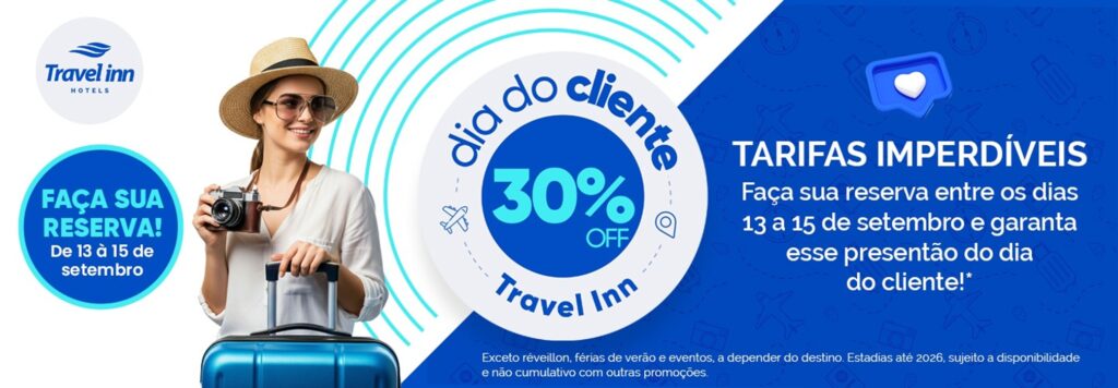 Válida exclusivamente para reservas feitas entre os dias 13 e 15 de setembro de 2025 para hospedagens em todos os hotéis da Rede Travel Inn