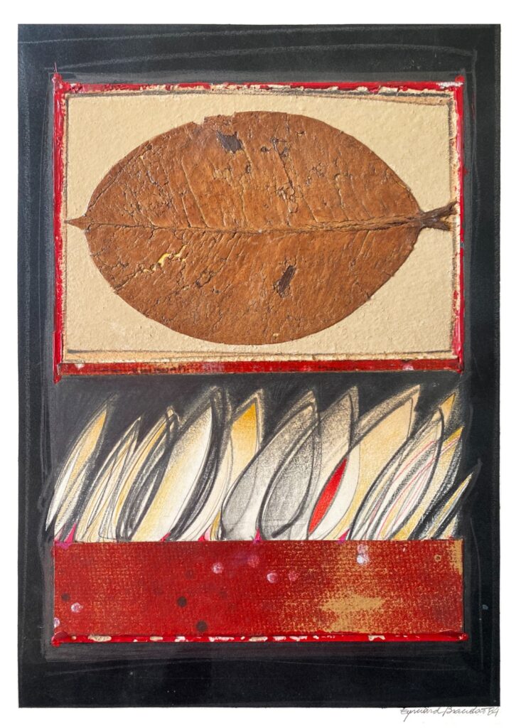 pinceladas, natureza tratada para efeito perene. Desenho e colagem. 39x29cm. 1984.