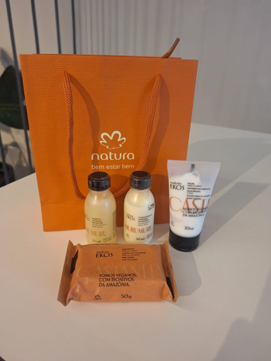 Ao desembarcarem em Belém, todos os Clientes vindos de Miami no voo comemorativo receberam um kit de produtos da linha Ekos da Natura (sabonete, hidratante, xampu e condicionador), produzidos com castanha e murumuru, ingredientes que representam a biodiversidade da Amazônia.