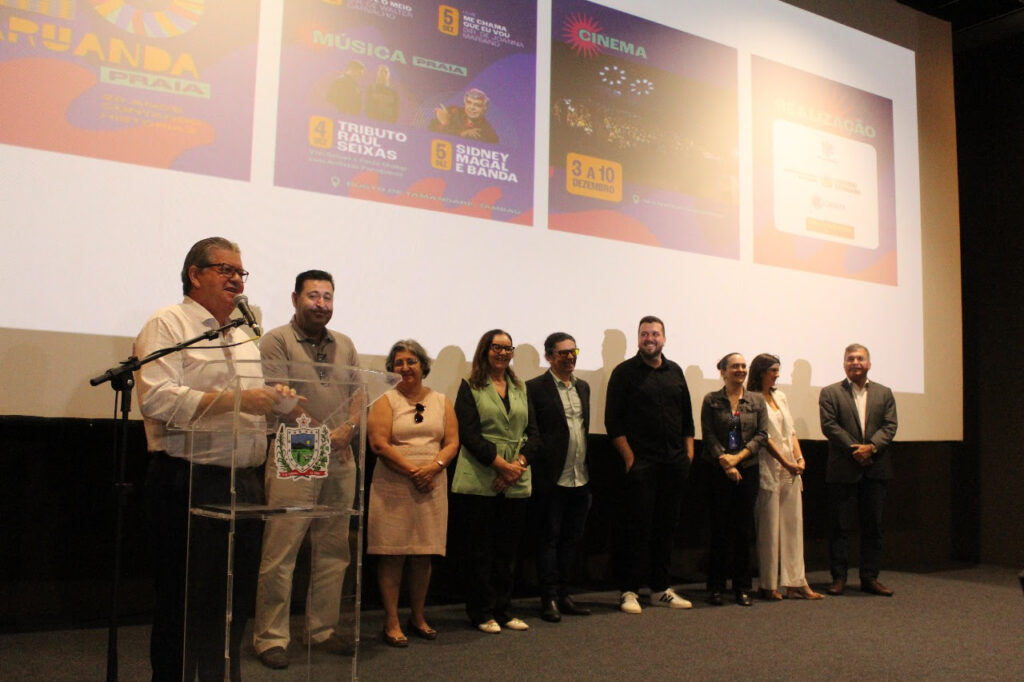 O governador João Azevêdo lançou na manhã desta quinta-feira, 9, no Cine Banguê (Espaço Cultural), a primeira edição do Fest Aruanda Praia, em comemoração aos vinte anos do mais antigo festival de cinema da Paraíba, o Festival Aruanda do Audiovisual Brasileiro. O evento será celebrado na primeira semana do mês de dezembro com cinema e música na Praia de Tambaú, em João Pessoa, e é uma realização conjunta de órgãos do Governo da Paraíba com patrocínio do Grupo Energisa através do ICMS Cultural (Programas de Incentivo Fiscal da Secretaria de Estado da Cultura), copatrocínio da Companhia de Água e Esgotos da Paraíba (Cagepa), Companhia Paraibana de Gás (PBGÁS) e Armazém Paraíba via Lei de Incentivo Fiscal do Governo Federal e da Secretaria do Audiovisual do Ministério da Cultura – SAV/MinC. A chancela é da Reitoria e do CCHLA-UFPB através da Bolandeira Arte & Films, produtora do evento.