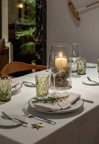 O cardápio da noite foi preparado para surpreender desde o início: petiscos de boas-vindas que unem criatividade e produtos locais; um amuse bouche que antecipa a tradição reinterpretada; pratos que equilibram frutos do mar, vegetais e iguarias contemporâneas; e pratos principais como cordeiro em duas cozidas ou lombo de boi com acompanhamentos sazonais. Para finalizar, um mousse de chocolate e pistache e uma mesa de doces natalinos.