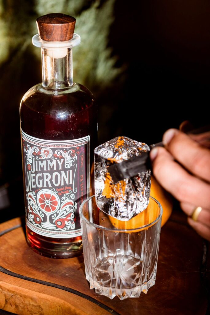 Disponível em garrafas de 750 ml, o Jimmy Negroni é comercializado pronto para servir. A recomendação é apenas adicionar gelo e finalizar com rodela ou casca de laranja. A receita combina Jimmy Gin, Campari e vermute rosso, mantendo o perfil clássico do coquetel italiano. O resultado é um drinque de sabor intenso, amargor característico e notas cítricas e herbais. O Negroni é reconhecido pela International Bartenders Association (IBA) como um dos “coquetéis inesquecíveis” e tradicionalmente preparado com partes iguais das três bebidas.