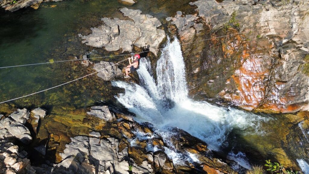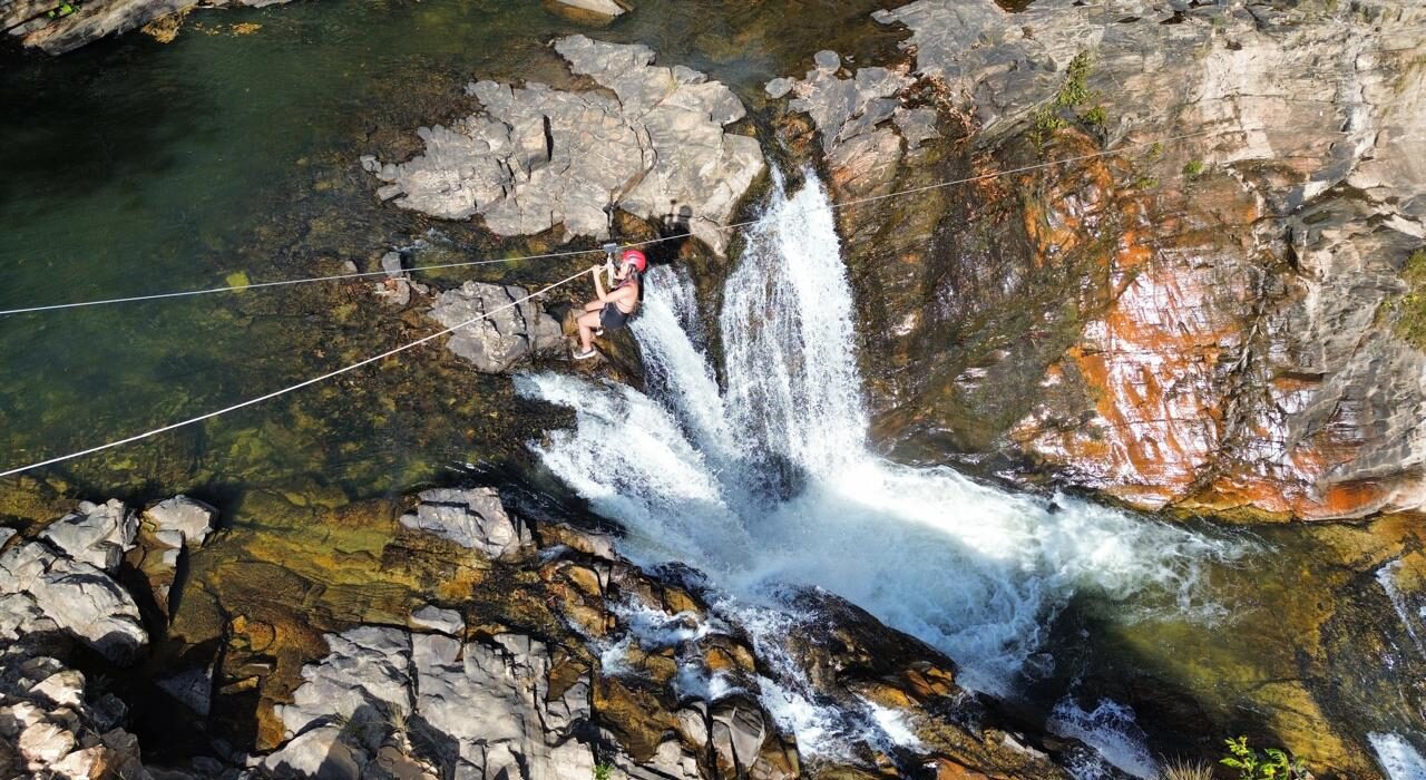 Salto de Corumbá oferece tirolesa, arvorismo e os famosos 1,200 metros de boia cross em meio ao cenário histórico do garimpo que aconteceu há quase 300 anos na cidade