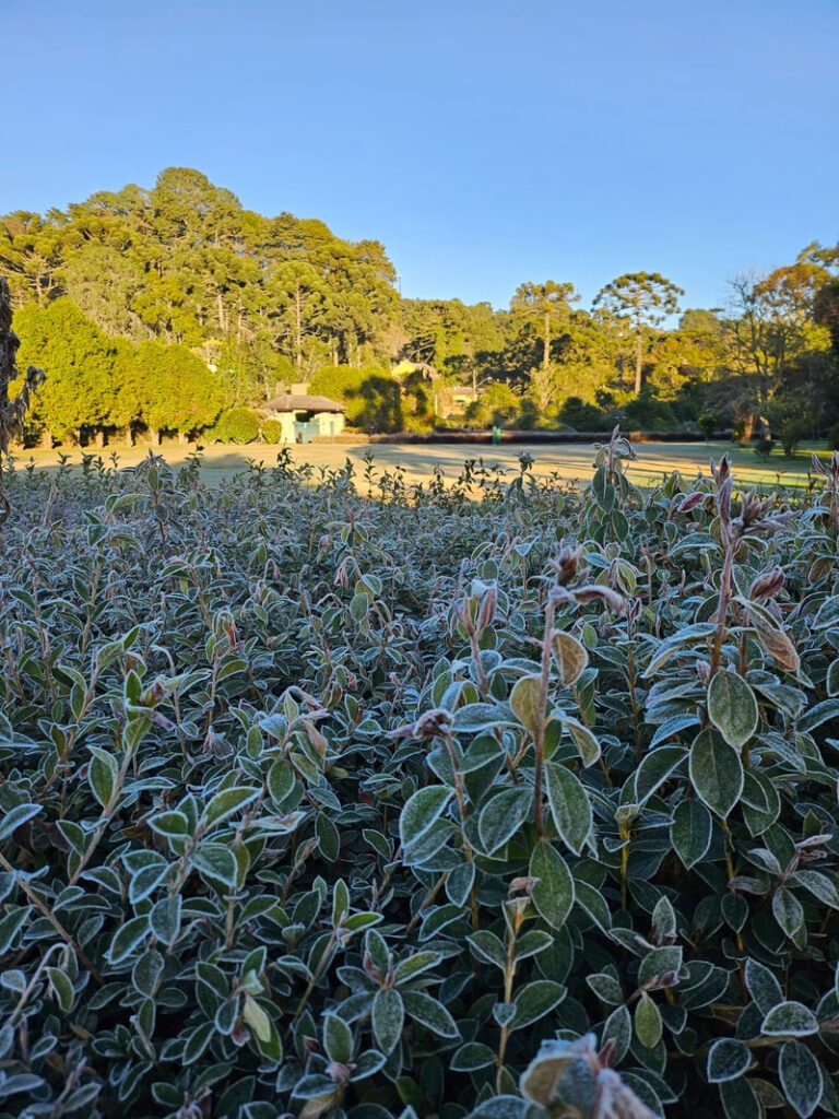 “O frio intenso cria um ambiente ainda mais encantador no nosso charmoso vilarejo e é um atrativo especial para os turistas que visitam o distrito, que voltou a ficar com as suas paisagens esbranquiçadas pela geada”, ressalta Rebecca Wagner, presidente da MOVE (Agência de Desenvolvimento de Monte Verde e Região).