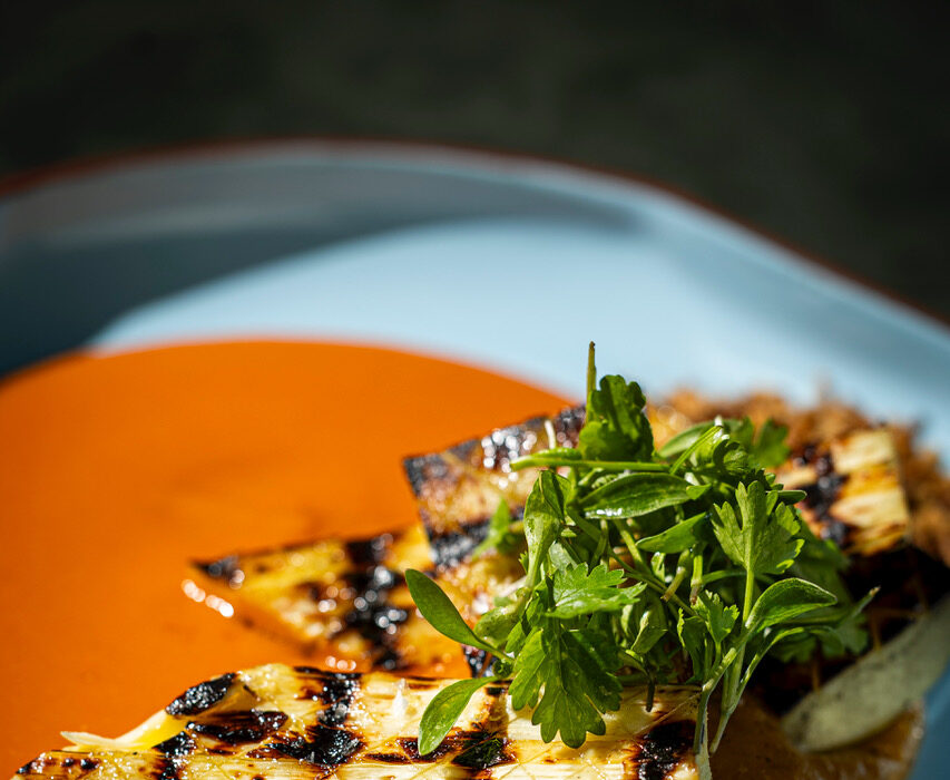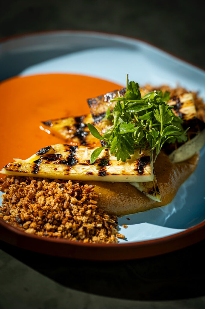 A Casa Azeite segue um caminho em que o vegetal encontra o frescor do azeite brasileiro. A Pupunha na brasa, servida com purê de banana da terra, molho de dendê e farofa de coco queimado, combina textura, perfume e acidez num prato que ficou entre os mais comentados da casa.