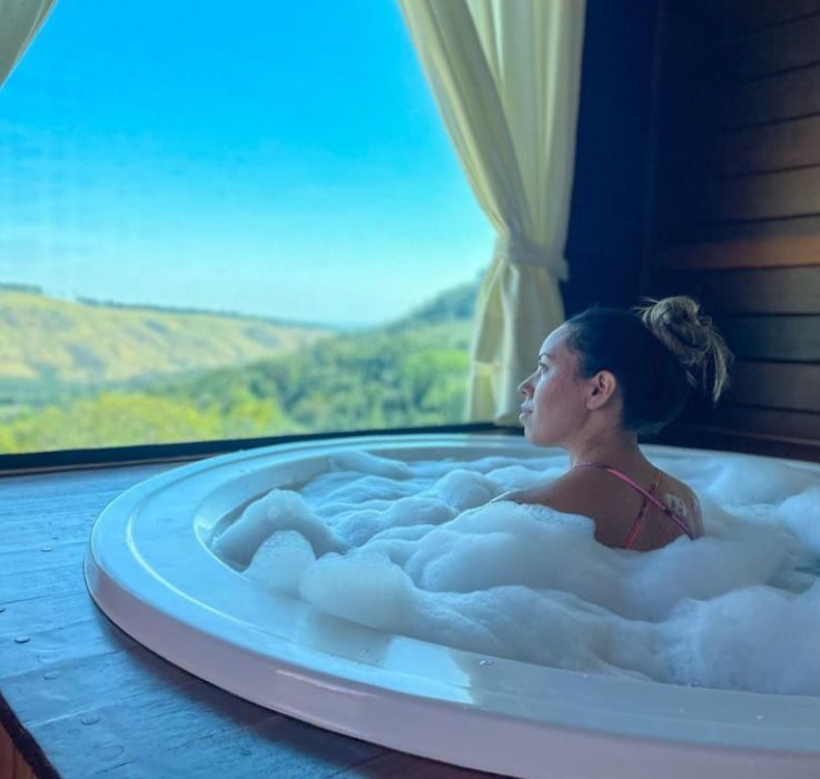O empreendimento possui 21 chalés no total que variam entre opções românticas — com banheira de hidromassagem e até piscina privativa climatizada — e familiares, que acomodam até quatro pessoas. Todos possuem lareira, varanda com vista para o vale e decoração pensada para proporcionar aconchego em qualquer estação.
