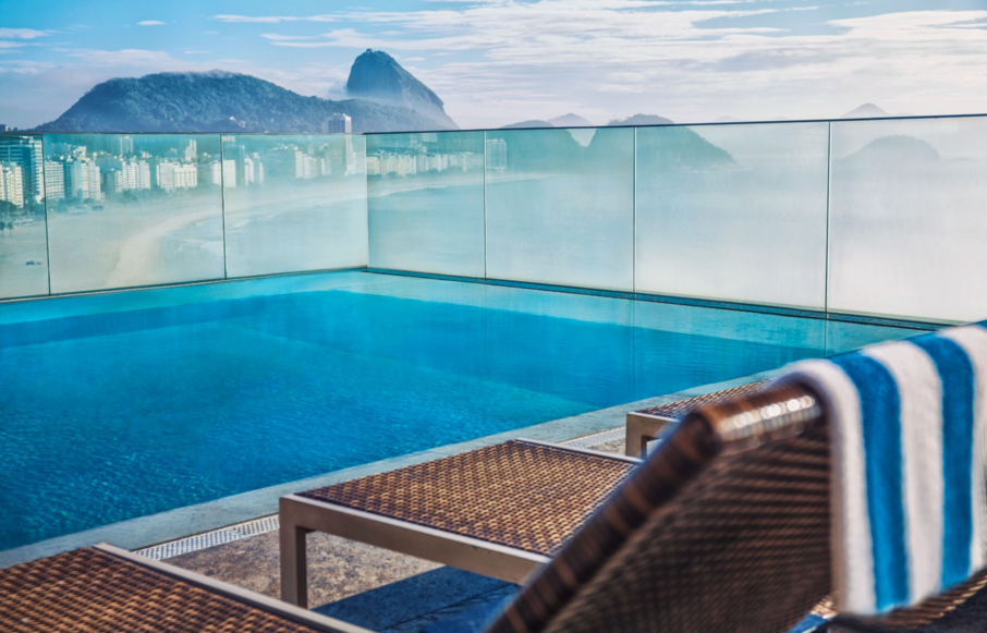 Já o Windsor California tem 157 quartos e piscina no terraço com vista panorâmica para a Orla de Copacabana. Suas acomodações proporcionam uma atmosfera intimista, ideal à hospedagem de lazer, corporativa e para pequenos grupos. As suítes executivas incluem, além da ampla varanda, quarto, sala e lavabo. Um dos diferenciais do hotel é o atendimento personalizado, com check-in em mesas individuais. Entre seus atrativos, estão a piscina com bela vista da praia, sauna e fitness center. Na parte da gastronomia, conta com bar e restaurante, tanto no térreo como no último andar, próximos à piscina, com destaque para pratos contemporâneos com ingredientes brasileiros aliados às culinárias francesa e italiana.