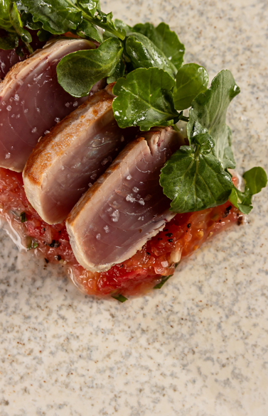 “O tomate é um ingrediente fundamental na cozinha italiana. Ele equilibra o prato ao reunir acidez, doçura natural e umami. Assim, mesmo com poucos elementos, é possível alcançar um sabor completo. É versátil e funciona tanto cru quanto cozido, como mostramos em duas propostas opostas. No atum, entra cru, ralado e temperado, trazendo frescor e acidez. Já no pomodoro, é cozido e reduzido, o sabor se concentra, ficando mais adocicado e intenso”, explica a chef.
