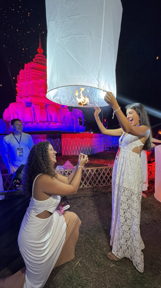 O Chiang Mai CAD Festival, organizado pelo Chiang Mai Arts & Design, é o mais procurado entre os estrangeiros e acontece em um cenário cercado pela natureza, com rituais budistas, apresentações culturais, buffet tailandês e o aguardado momento em que as lanternas sobem ao céu e as cestas de luz flutuam pelos rios. “O festival é superconcorrido e os ingressos limitados. Recomendamos comprar um ano antes, assim que abrem as vendas, mas quem vai em uma expedição com a gente não precisa se preocupar com nada, porque garantimos o ingresso em lugares privilegiados, com transfer privativo e toda a facilidade possível”, explica Carolina.