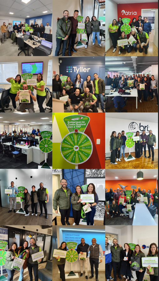 Durante uma semana, uma “turma musical” invadiu as agências em clima de festa e desafiou os participantes a cantar trechos de músicas que incluíssem palavras como “avião”, “saudade”, “céu”, “abraço”, “viajar”, “sol”, “chuva”, “país” e “Brasil”. Quem acertava ganhava a chance de girar uma roleta de prêmios, concorrendo a ingressos para o Festival Coala, além de brindes exclusivos da TAP como cadernos, tags, porta-chaves e canecas.