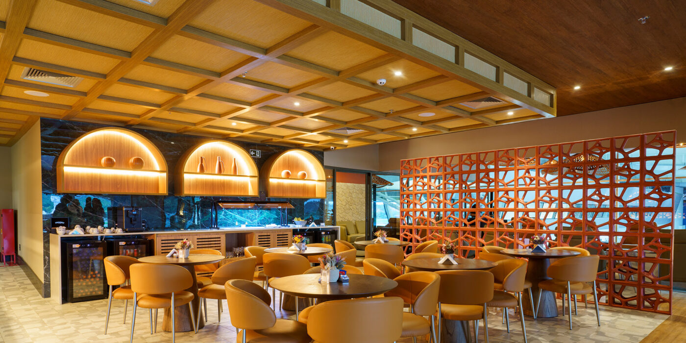 Com design exclusivo e inspirado na cultura regional, o lounge proporciona uma experiência acolhedora e sofisticada. Entre os destaques de conforto estão as duchas privativas, Wi-Fi ilimitado em alta velocidade, sala de reunião em ambiente reservado, variedade de drinks e bebidas, além de refeições e snacks de qualidade disponíveis à vontade.