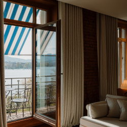 Suite Discovery:Explore as suítes únicas criadas por Philippe Starck, com vistas espetaculares do Lago de Zurique e dos Alpes.